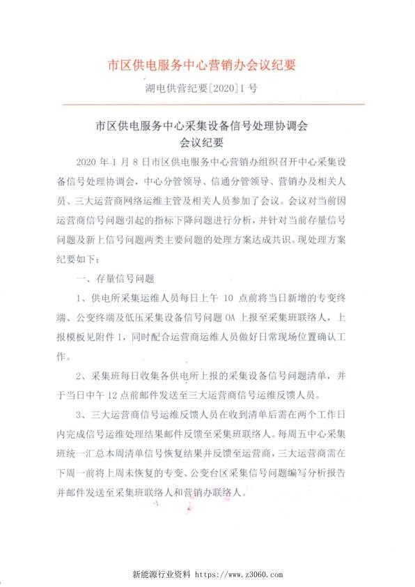 湖州供电服务中心采集设备信号处理协调会会议纪要 湖电供营纪要[2020]1号