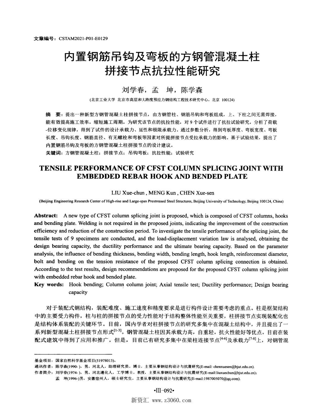 关键词:方钢管混凝土柱 拼接节点 抗拉性能 极限承载力