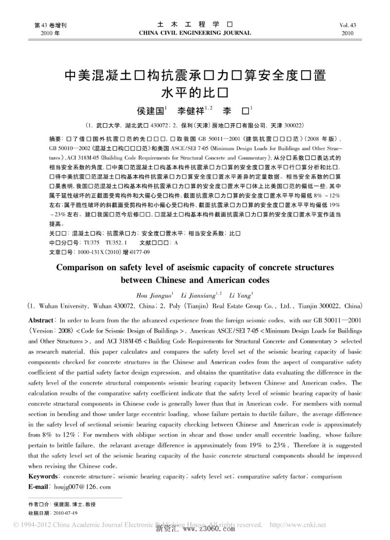 中美混凝土结构抗震承载力验算安全度设置水平的比较_侯建国