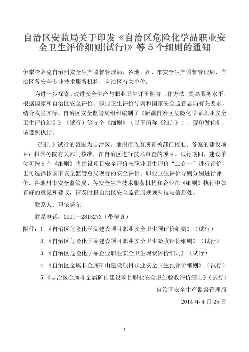 20140425--新疆维吾尔自治区危险化学品建设项目职业安全卫生验收评价细则(试行)