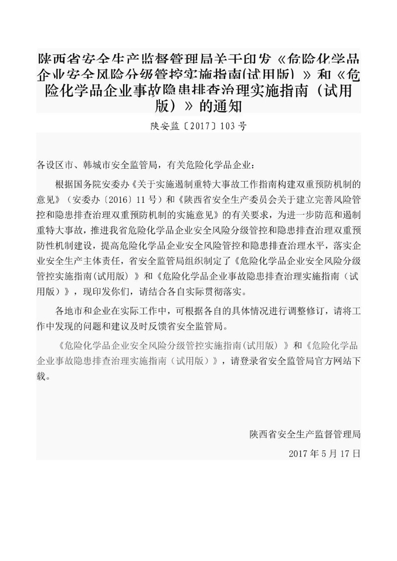 20170517--陕西省危险化学品企业事故隐患排查治理实施指 ...