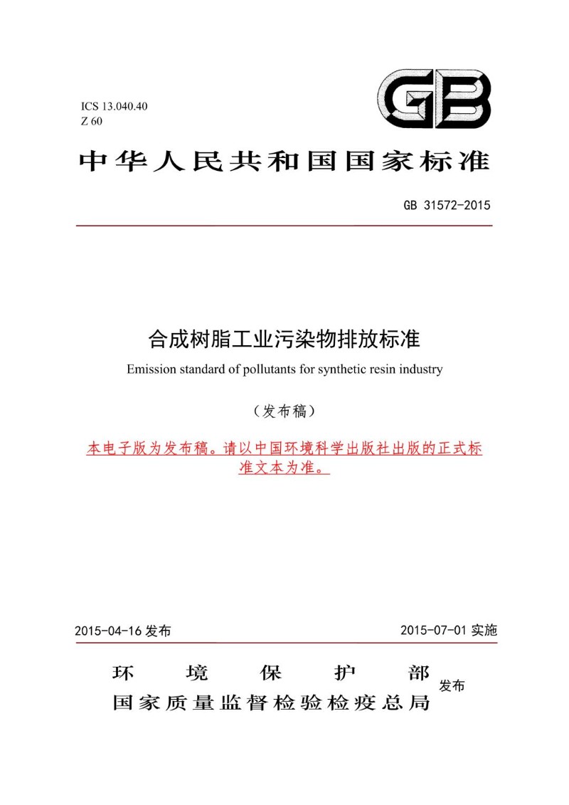 文件名:GB 31572-2015 合成树脂工业污染物排放标准(发布稿).pdf